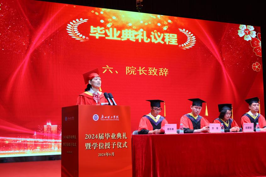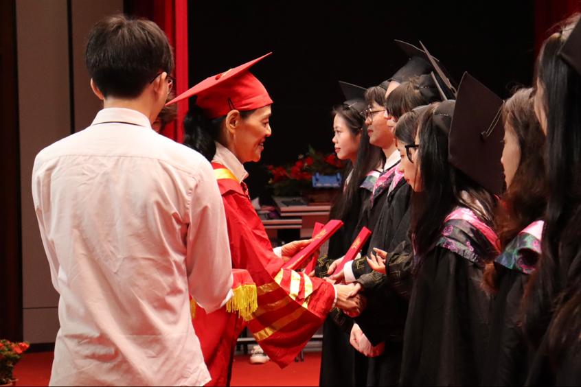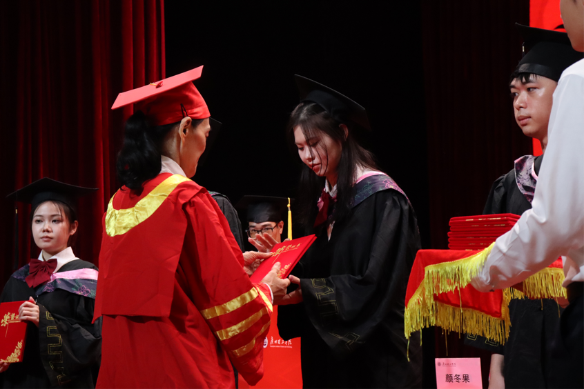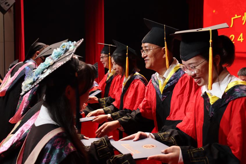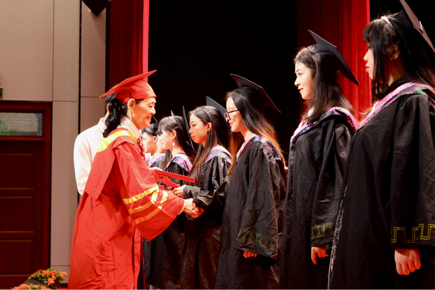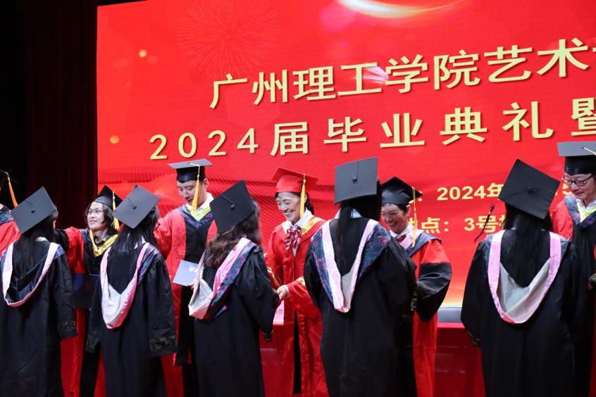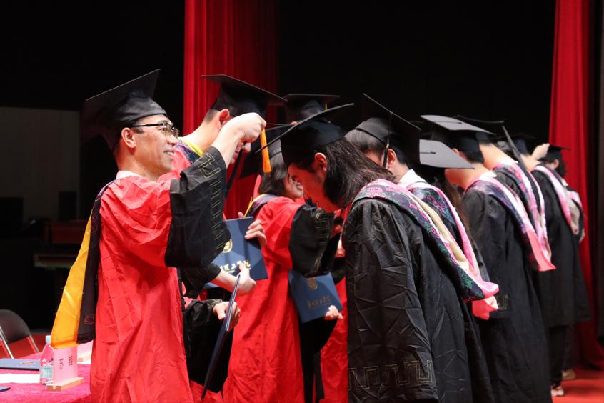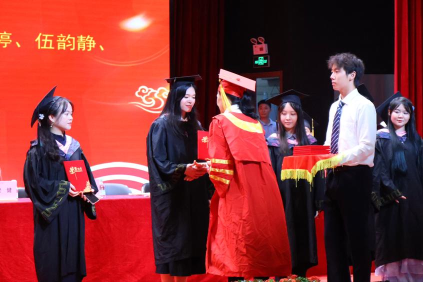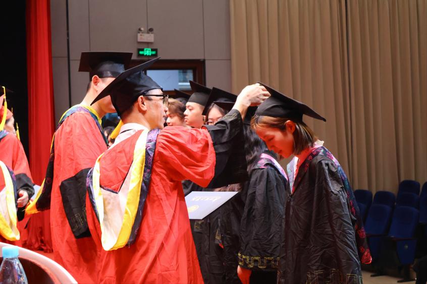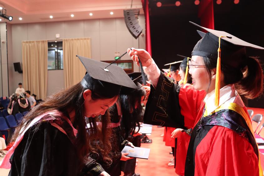 在领导、老师和现场家长的见证下,威廉希尔中文网站2024届毕业生们分组上台完成拨穗正冠授位仪式。