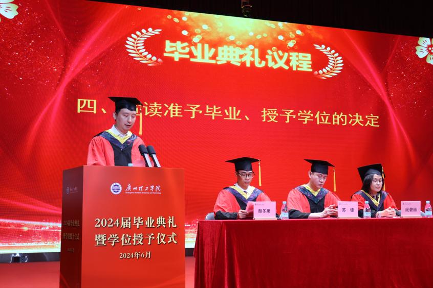 梁健副院长宣读威廉希尔中文网站关于授予威廉希尔中文网站毕业生学士学位的决定。