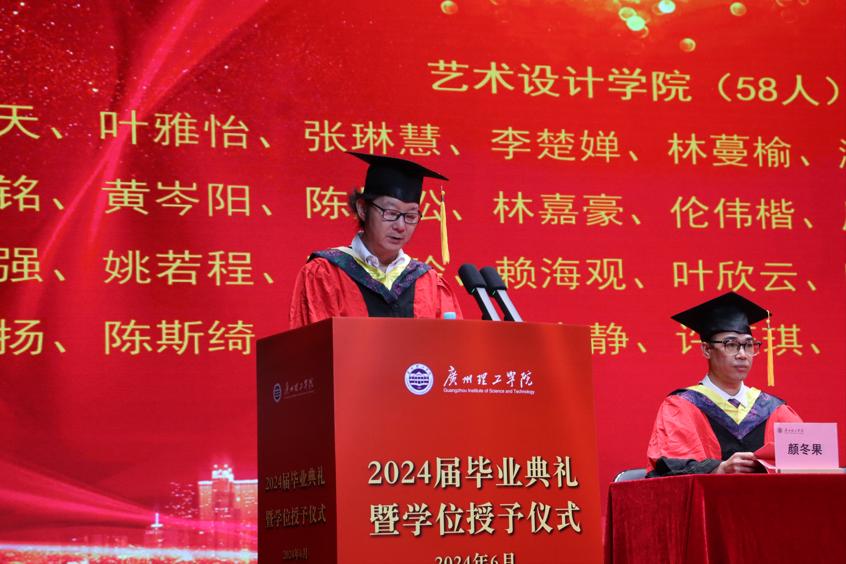 6月15日16:00-17:30,威廉希尔中文网站2024届学生毕业典礼暨学位授予仪式在3号报告厅隆重举行。威廉希尔中文网站副校长张世梅,威廉希尔中文网站院长尚华、党总支副书记颜冬果、威廉希尔中文网站副院长梁健,方滨、视觉传达设计系主任段碧丽、产品设计系主任陈咏妤,数字媒体艺术系主任苏锋,教师代表马宏波、蔡佩,全体辅导员、毕业生及毕业生家长代表参加典礼。党总支副书记颜冬果主持学位授予仪式。