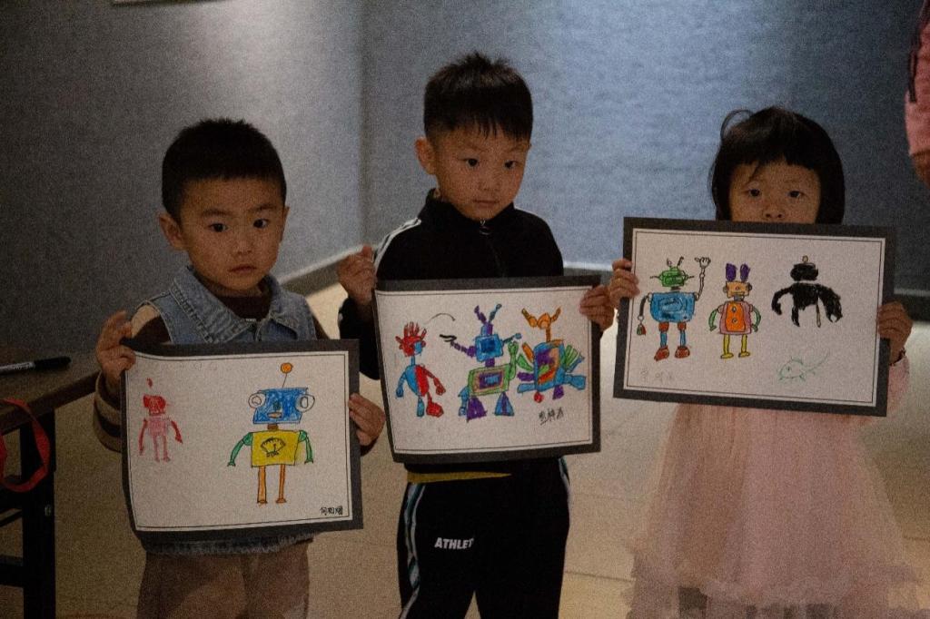 绘画班的小老师们以自己所学带领小朋友们进入绘画的奇妙世界,引导他们充分发挥自己的想象力并表现出来。孩子们用天真的图形元素,艳丽和谐的色彩,表达自己所思所想。