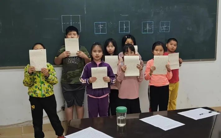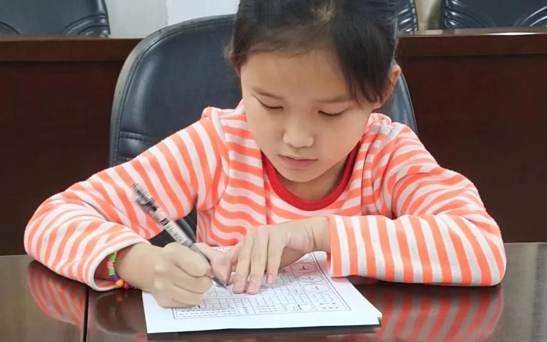 书法大班本周课程内容:主要学习垂露竖和悬针竖的写法,配合四个例字练习:卜,下,丰,止,逐渐矫正学生的书写姿势。