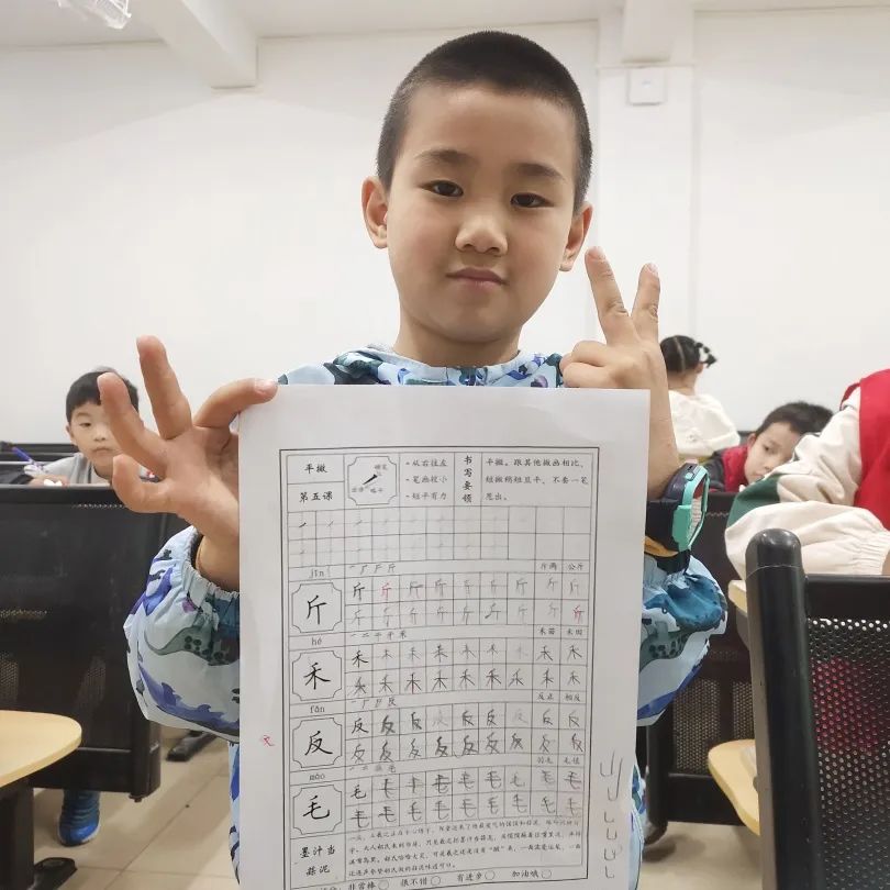 书法小班这周上笔画短撇,生字有:斤禾反毛。认识撇的写法,识记每个字的笔顺及笔画与笔画之间的位置关系。