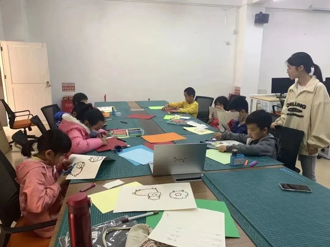 绘画大班以“牧场小羊”为主题,在课上小朋友们通过图片观察,分析了解小羊的外形与结构特征,并结合自己的认知大胆创作、展开想象力。在彩色卡纸上画出丰富多彩的牧场生活及羊圈环境,用剪贴的方法将憨态可掬的小羊加入牧场中。孩子们发挥主观能动性,创作出羊儿们各自的特点,激发学生的思维与动手能力。
