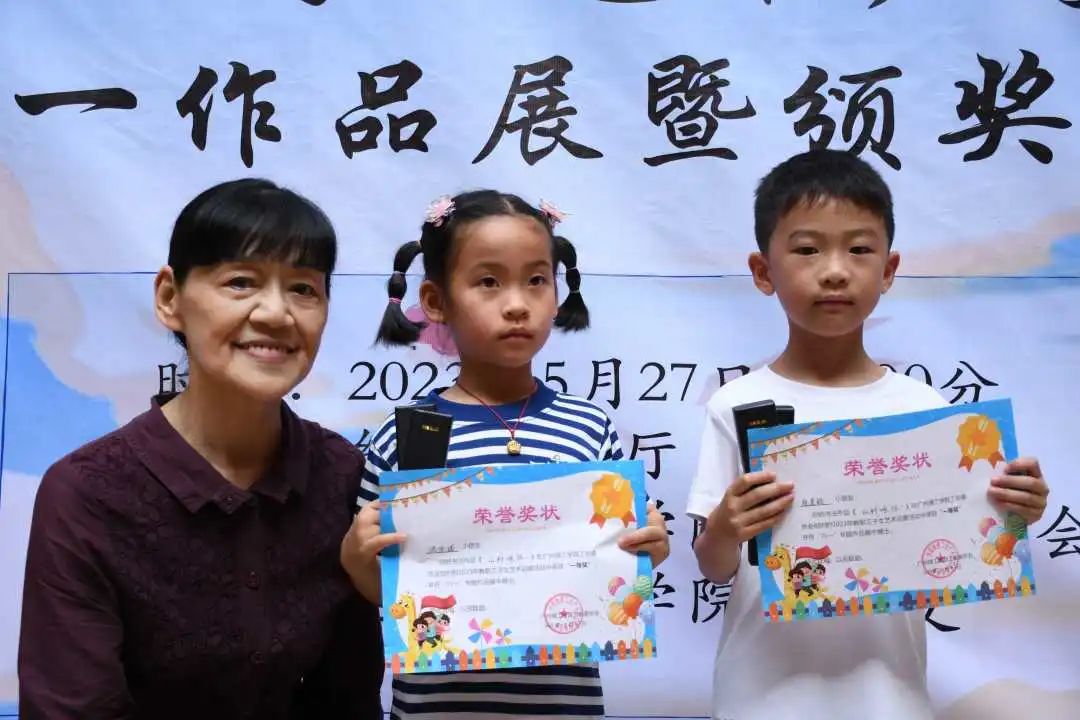 紧接着,主持人宣布2022-2023学年度启蒙书法班,绘画班一等奖,二等奖,三等奖,优秀奖的名单。尚华院长、唐海春主任、叶保军老师分别为一等奖,二等奖,三等奖颁发荣誉证书。