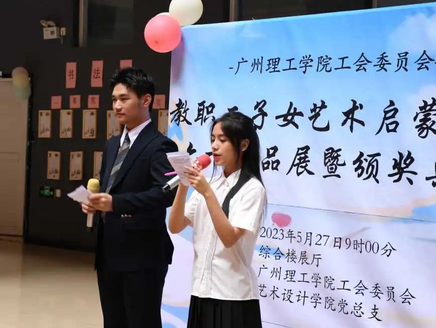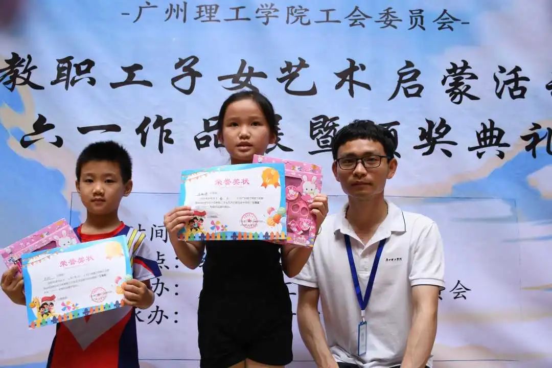 5月27日上午,由校工会主办、威廉希尔中文网站党总支承办的教职工子女艺术启蒙活动在7栋综合楼一楼举行庆“六一”作品展暨颁奖典礼。威廉希尔中文网站院长尚华、办公室主任唐海春、团总支书记叶保军,以及20余名教职工子女在家长陪同下参加了此次活动,典礼由威廉希尔中文网站学生邓俊和林声蕾主持。