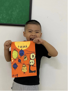 绘画小班课以“中秋佳节”为主题,课堂上老师讲解中秋节相关的故事与知识,通过观察灯笼、月亮的图片,让孩子们对造型绘画物的特征有初步认识,培养他们观察能力。以绘画和剪贴结合的方式进行创作,剪纸过程锻炼孩子们动手能力,剪贴创作方式基础上展开大胆的想象,对画面背景进行装饰丰富作品的层次感。