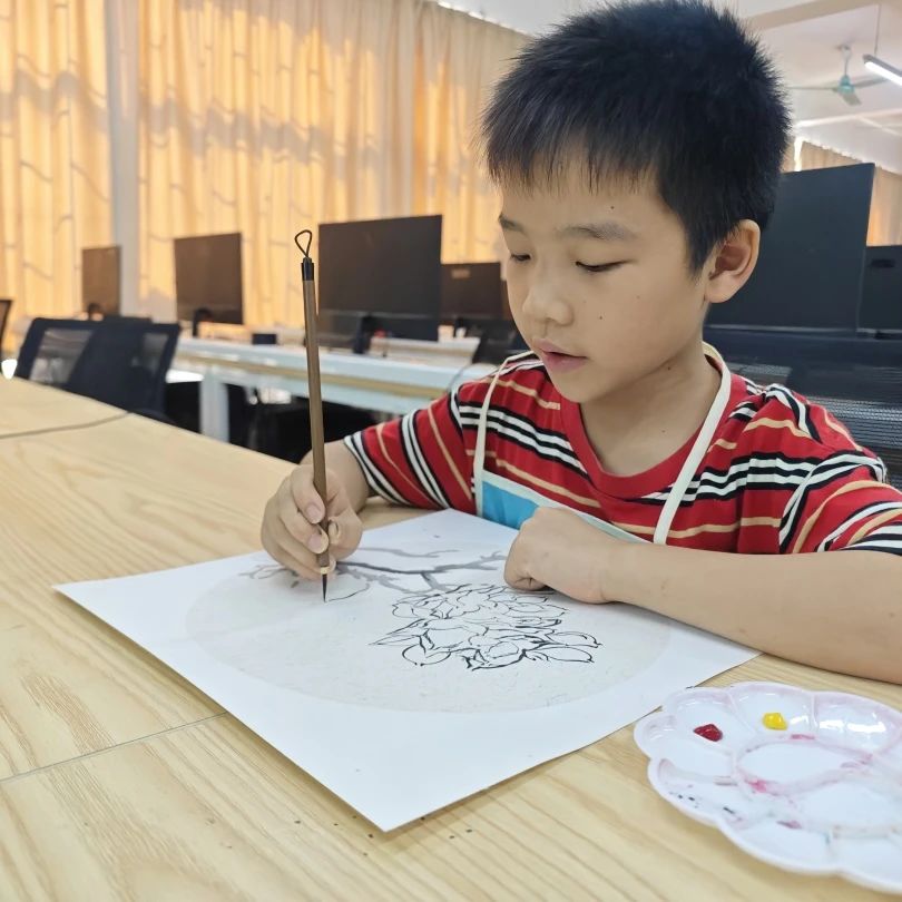 国画班的孩子们小朋友们深入学习了花鸟画的绘制技巧。老师首先着重分析了花鸟画的画法结构和绘画顺序,确保每一位小朋友都能理解并掌握基本的构图和着色方法。在绘画过程中,老师细心地纠正了小朋友们的握笔姿势,并逐一指导他们进行绘画实践。在老师的耐心指导下小朋友们不仅提高了作画的积极性,还优化了绘画效率,逐渐掌握了花鸟画的精髓。