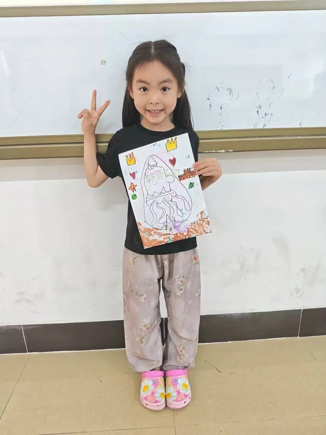 在一片欢声笑语之中,孩子们拿起画笔,蘸上缤纷的色彩,精心编织出一个个奇妙无比的世界。每一回充满想象的创作过程,都宛如一场童心与艺术之间的美丽邂逅,有趣且令人回味。而每一幅别具一格、独一无二的作品,恰似想象力尽情绽放的精彩瞬间,承载着孩子们无尽的纯真与创造力。