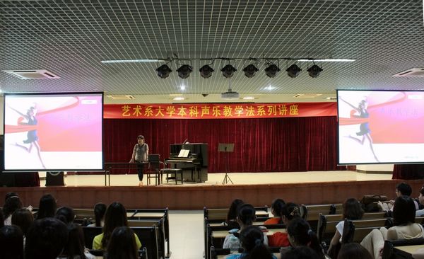 (通讯员:李丽丹 摄影:张怡)2013年5月28日晚19:30,在广东技术师范学院天河学院学术报告大厅举行了“艺术系芦跃峰教授大学本科声乐教学法讲座”。音乐教研室芦跃峰教授抱着“学术是开放的”态度,毫无保留的把自己30多年的教学经验和知识奉献给了音乐表演专业的全体师生。讲座围绕声乐如何“教”和“学”展开了讲解,普及了很多声乐学习方面共性的知识点。芦教授言传身教,现场示范,学生们情绪高涨也进行了现场的演唱让芦教授进行指导。整个讲座持续近两个小时,芦教授的风趣幽默不断赢得师生们热烈的掌声,艺术系音乐表演专业的全体师生聆听了这次讲座,都觉得颇有收获。此次讲座为系列讲座之一,我们共同期待下学期芦教授的讲座。