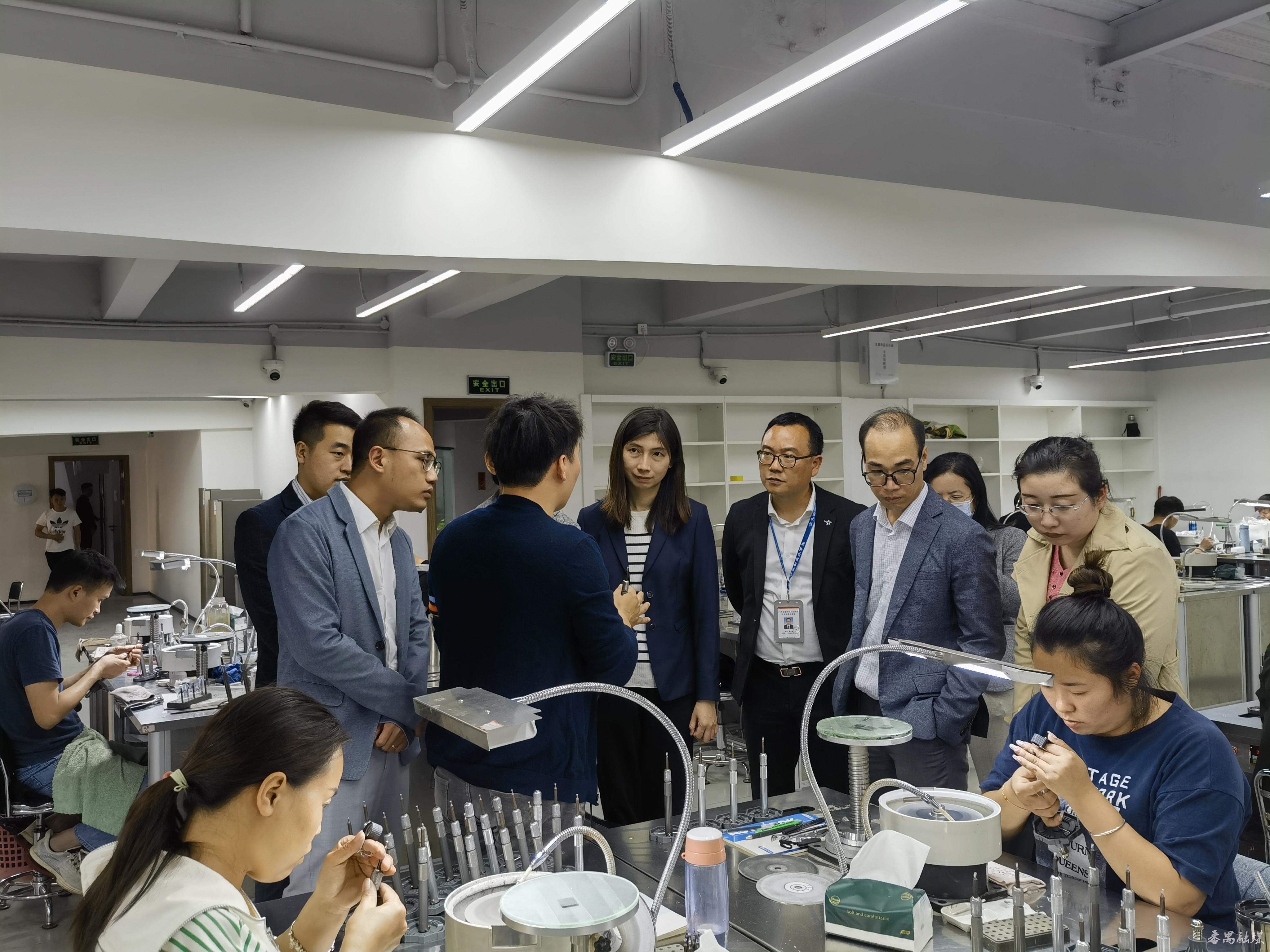 当天下午,威廉希尔中文网站考察调研组来到番禺大罗塘珠宝名镇,第一站来到番禺元艺珠宝公司,参观了该公司珠宝首饰的生产工艺流程,交流校企合作经验。