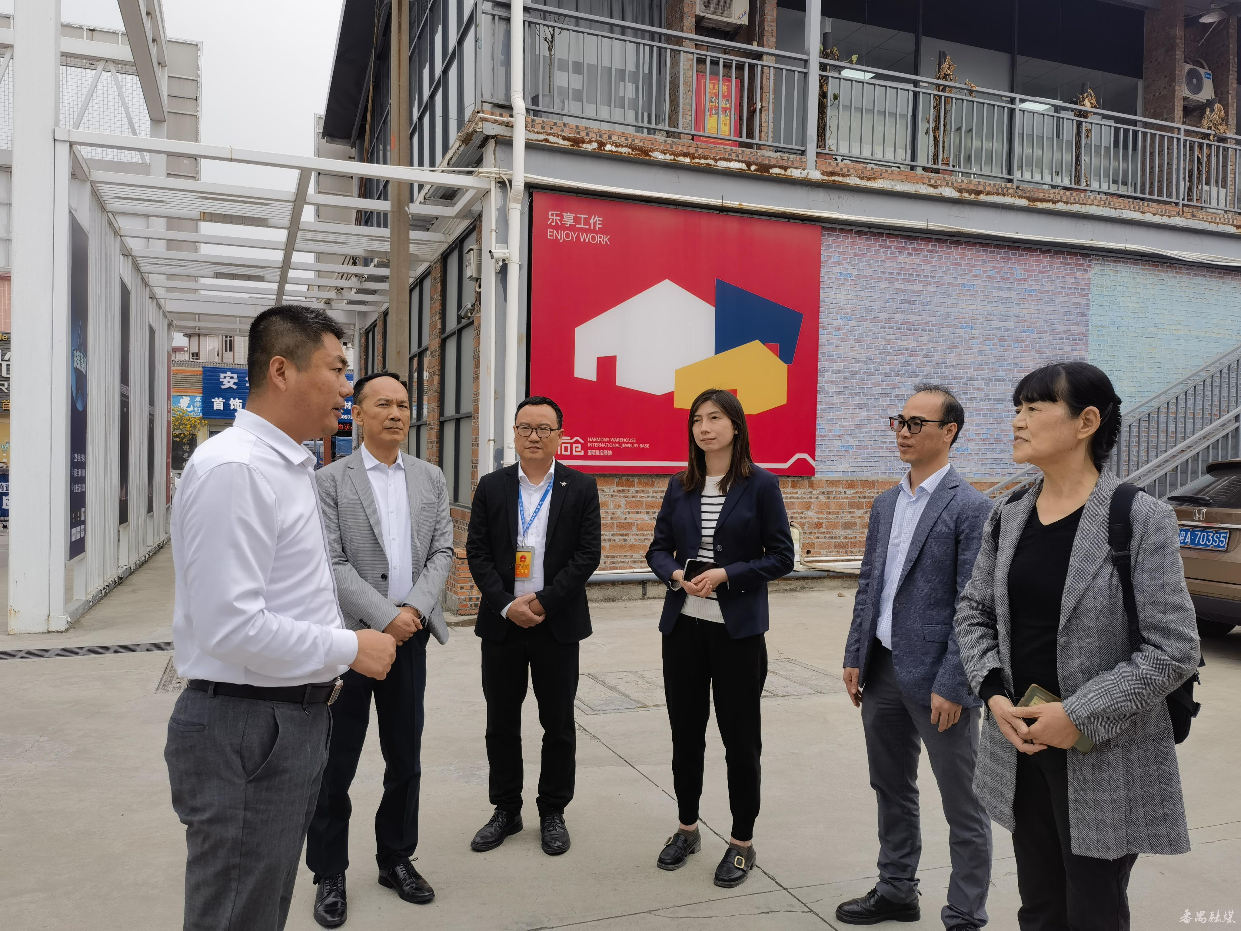 随后,考察调研组来到前后仓国际珠宝产业园参观,与园区负责人、相关企业进行了交流。考察调研组对前后仓国际珠宝基地创新引进全球高端产业资源,打造集珠宝设计、珠宝定制、珠宝检测、珠宝鉴定、珠宝展示、珠宝评估、珠宝交易功能为一体的粤港澳大湾区地标性珠宝数字贸易产业基地,以及番禺地区抖音、快搜等直播基地番禺总部也入驻基地等做法表示赞赏。