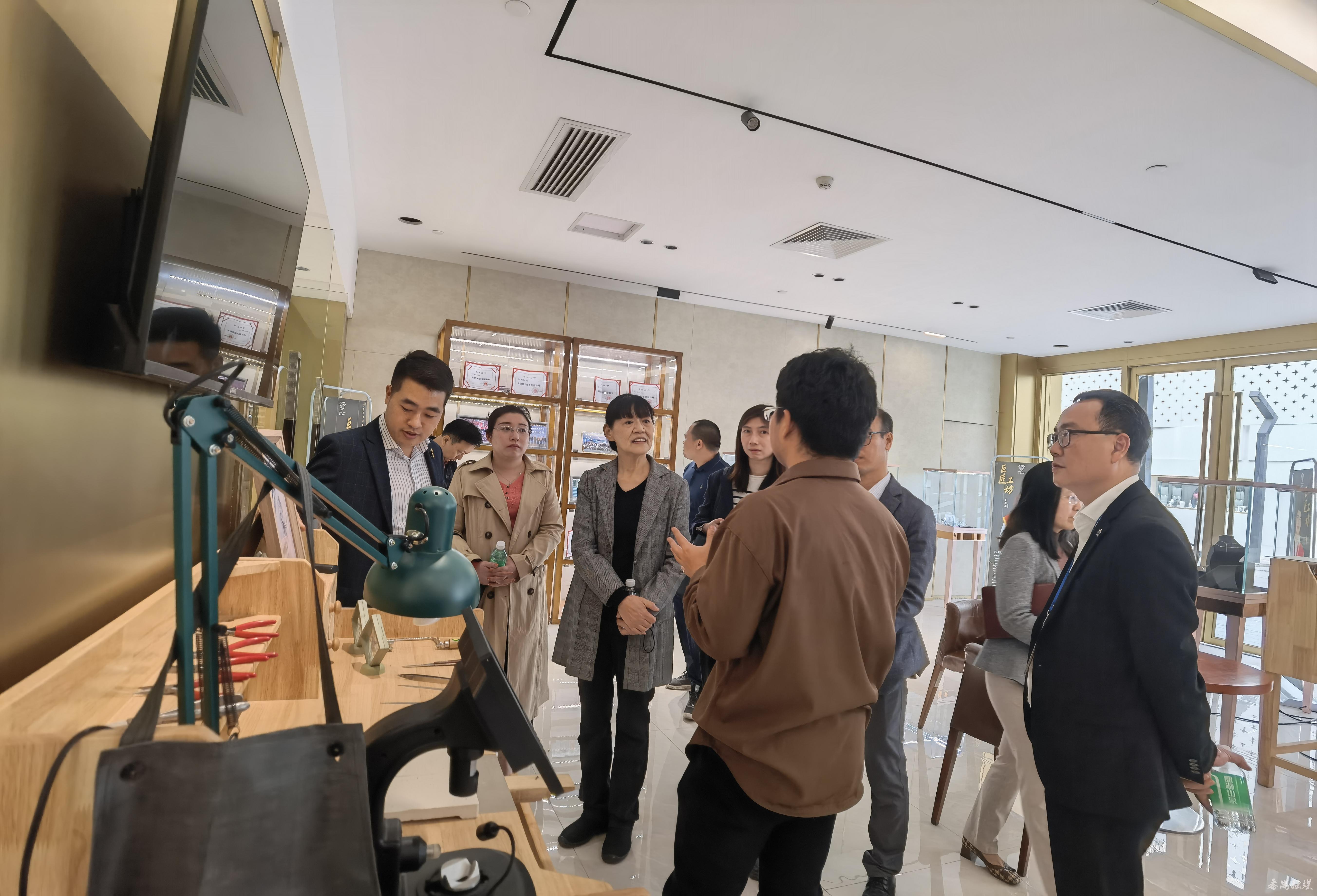 考察调研组随后来到金俊汇国际珠宝交易中心参观交流。金俊汇国际珠宝交易中心位于大罗塘珠宝名镇核心区域,是一家为珠宝行业度身打造的集原石采购、研创设计定制、加工生产、交易于一体的一站式国际珠宝采购、交易服务平台。场馆内汇聚了数百种来自世界各地的宝石及黄金白银等贵金属原料,品类齐全,融合珠宝展贸、品牌孵化、采购交易于一体,打造一站式珠宝采购交易平台。考察调研组还与亨利珠宝、诚好珠宝、大罗塘珠宝首饰商会、新近入职的毕业生等进行了交流。考察调研组认为,通过考察调研,可以深入了解番禺珠宝的起源,全面了解珠宝个性化的设计、工艺、销售的特点,领略“世界珠宝,番禺制造”的迷人风采。对亨利珠宝等企业参加国内、境外展览会获奖表示赞赏。