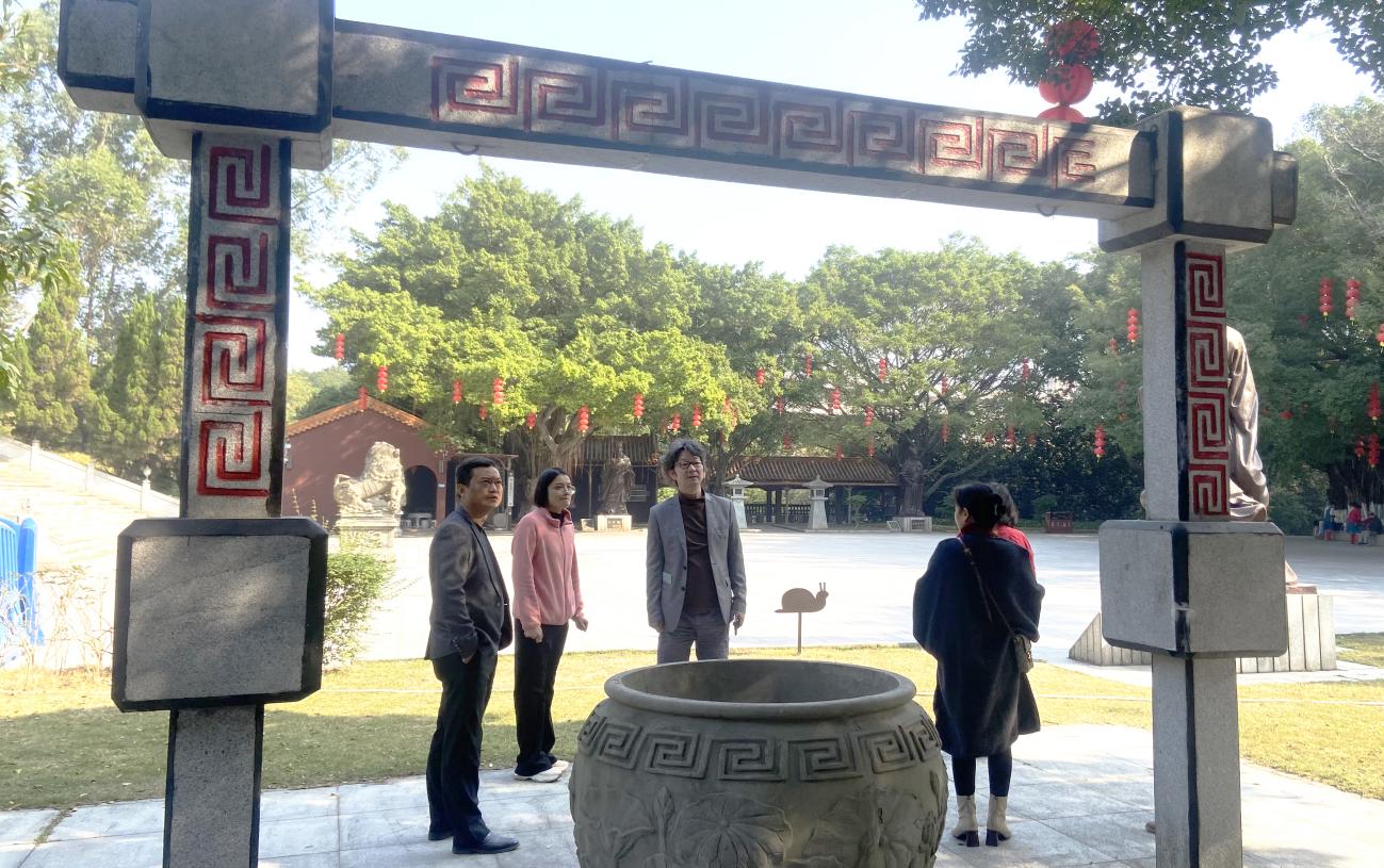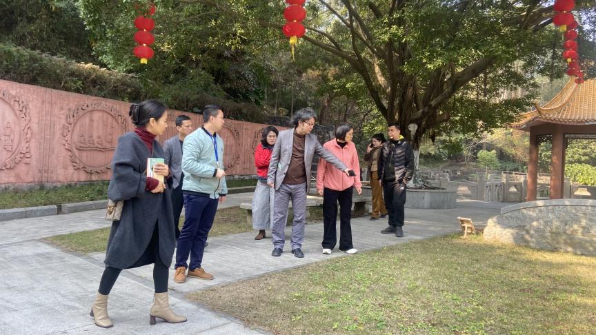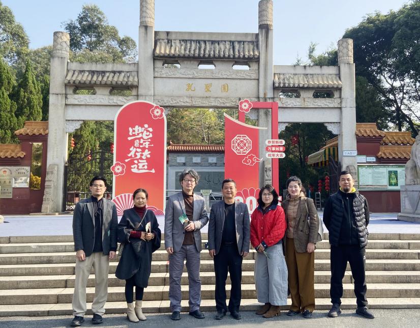 (赖家恩)1月7日,我校威廉希尔中文网站与佛山三水孔圣园进行跨专业跨工作室联合调研活动,此次活动以校地合作为契机,共谋文化创新发展,标志着双方合作的新篇章正式开启。此次活动由威廉希尔中文网站方滨副院长带队,视觉传达设计系主任段碧丽、教师赖家恩、数字媒体艺术专业教师彭国文、陈广湛等一行五人参与。佛山仟知行文化科技发展有限公司总经理林鹏、副总经理黎淑贤、孔圣园园长岑燕瑜等企业代表陪同调研。