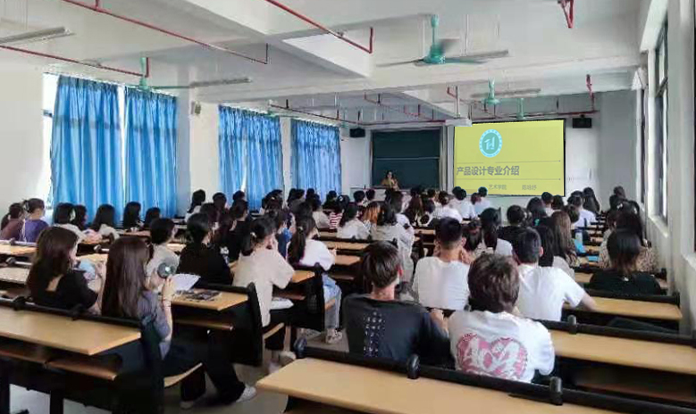 产品设计专业今年新生有1个班级的专插本班级,专业负责人陈咏妤老师介绍了本专业以箱包设计、首饰、文化创意产品设计等方面工作为主,教、学、练合一的特色专业。具备担任产品设计师、箱包设计师,首饰设计师,品牌设计师、交互设计等岗位专业能力。 2018-2021年产品专业就业率100%。同时也介绍了核心课程:人机工程学、产品效果图表现技法、Rhino产品造型设计、时尚饰品设计、珠宝首饰与工艺设计、箱包设计与制作、品牌策划与设计、文化创意产品设计、交互设计等。