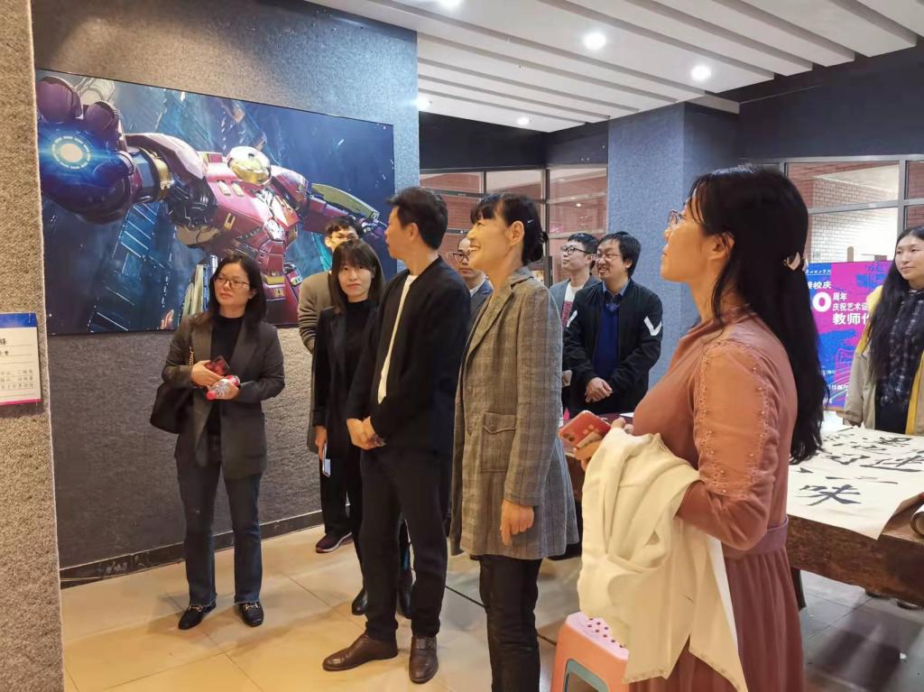 会后,在尚华院长等人的陪同下,广东舞蹈戏剧职业学院一行人参观了我校威廉希尔中文网站的教师作品展、实训室、画室。