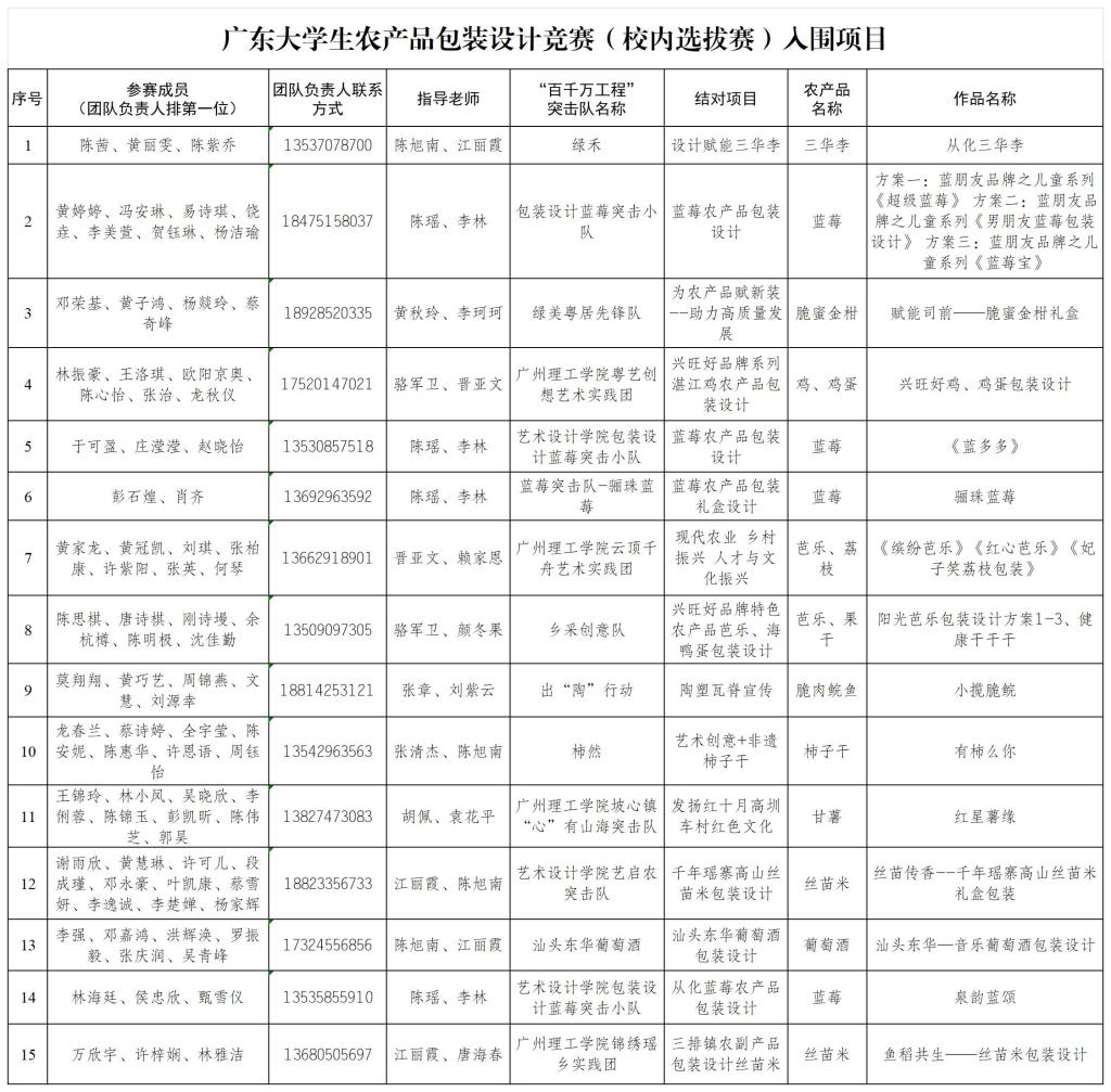 附件:广东大学生农产品包装设计竞赛校内选拔赛评审结果(拟推荐参加省赛项目)
