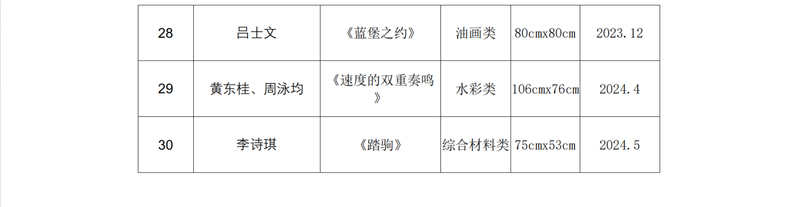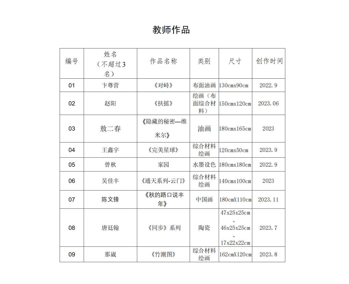 (吴佳丰)2024年4月11日,广东省教育厅宣布将举办第七届粤港澳大湾区学校美术作品展暨第九届广东省高校美术作品学院奖双年展事宜。接到通知后,在曾秋主任的主持下威廉希尔中文网站基础教研组由那崴、陈文锋、唐廷翰、薛鑫、吴佳丰等多位老师迅速成立评选专家小组展开行动,仅用两天时间就高效率完成了学院作品的征集、评选流程,成功筛选出30件优秀师生作品参加此次双年展送选工作。