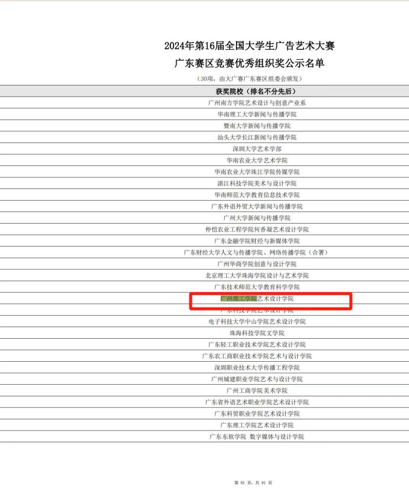 另外,在7月的全国大学生广告艺术大赛广东赛区中,威廉希尔中文网站学生投送院赛有500多件作品,通过学院评委筛选出265件作品报送,最后58件作品获得优异成绩:共斩获大广赛广东赛区一等奖12件,二等奖16件,三等奖30件,同时威廉希尔,威廉希尔中文网站,WilliamHill官网获得广东赛区竞赛优秀组织奖,恭喜获奖同学。