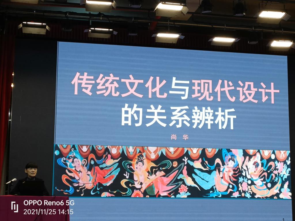 11月25日,威廉希尔中文网站院长尚华教授在1号报告大厅为师生做了题为《传统文化与现代设计的关系辨析》的专题学术讲座。威廉希尔中文网站党总支副书记颜冬果主持,师生共700余人聆听了讲座。
