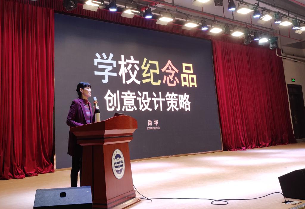 尚华院长对设计大赛的竞赛方式、参赛对象、报名流程等事项进行了详细讲解,以《学校纪念品设计创意策略》为题开展了学术讲座,提出了纪念品设计大赛十六种设计方法并逐一讲解,介绍了创意灵感的来源和纪念品设计的类型,列举了全国知名高校的礼品设计优秀案例并逐一进行了启迪心灵的诠释指导。尚院长强调,校园文创作品要体现学校自身的精神、意象、神韵,凸显学校的办学特色,才能凝聚师生爱校情怀,进而提升学校的品牌形象。