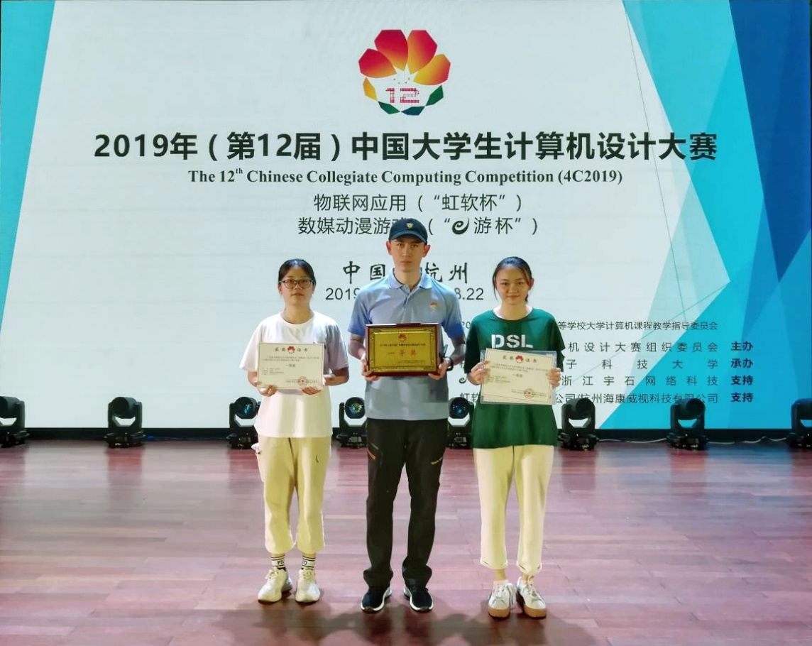 8月18-22日,由教育部高等学校大学计算机课程教学指导委员会、中国大学生计算机设计大赛组织委员会联合主办的2019年(第12届)中国大学生计算机设计大赛(物联网应用/数媒动漫游戏类)总决赛在杭州电子科技大学举行,我校代表作品获得一等奖。