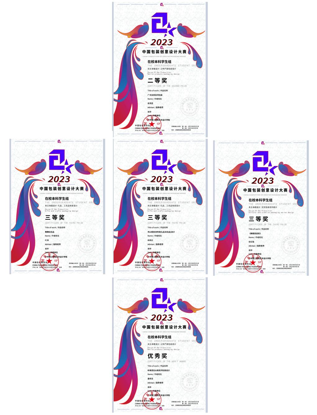 在2023年中国包装创意设计大赛中,威廉希尔中文网站视觉传达设计20级5班同学的原创包装设计作品经过大赛评委会的初评、复评和终评,最终梁清蓝同学的《广式凉茶系列包装》荣获二等奖;张石强同学的《顺德双皮奶》系列包装、叶涛同学的《舞狮纪念品》系列包装、林绮正同学的《鸡公榄民间传统礼品(纪念品)设计》系列包装均荣获三等奖;董奇采同学的《岭南茂名水果系列包装》荣获优秀奖。