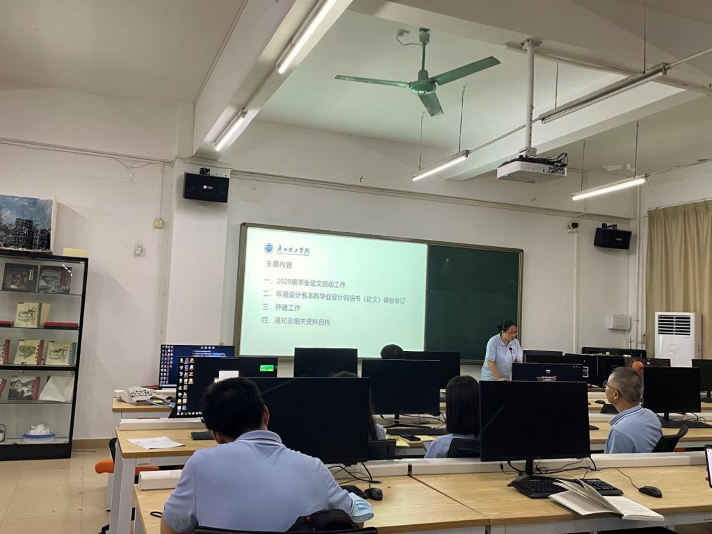系主任安陆禄老师详细介绍了2025级毕业论文指导的相关安排,强调今年的毕业设计(论文)工作的重要性,希望教师们重视学校毕业论文进度的计划,让2025届毕业设计(论文)工作顺利推进。教师们一同解读了2025年毕业论文(设计)的相关通知,了解了论文格式和过程性资料编辑的新要求。为有效的提升环境设计专业毕业设计(论文)的质量,吸取往届经验,环境设计系开展毕业设计说明(论文)模板的修订计划,将成立三个论文修订工作组将从住宅及室内设计、建筑及景观规划设计以及其他方向(如公共艺术及设施小品、家具设计等)三个方向对设计说明(论文)模板集合专业特征进行规范和细化。同时设立一个毕业设计(论文)过程性文件审定组,主要负责论文过程性文件的细化及指导性说明,以确保模板修订和指导工作的规范性与高效性。修订计划由白颖副教授总负责。