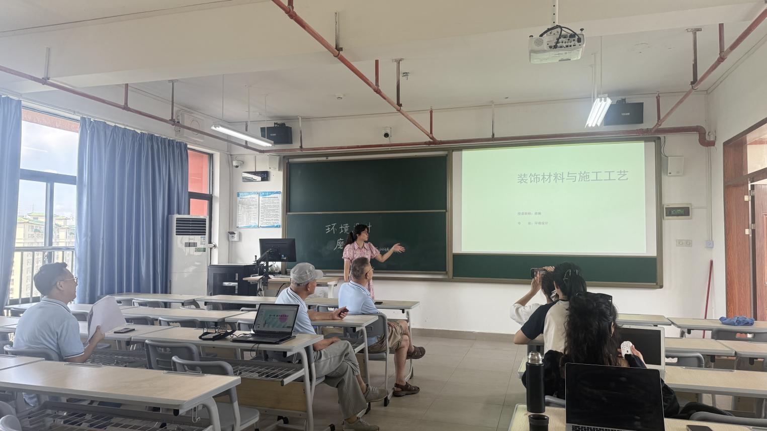 活动中,蔡佩、冯勤、邹善智、陈恩恩、陈丽娜、赵佳辉、王萱等教师依次进行了课程教学展示,内容涵盖本学期环境设计专业所有课程。蔡佩老师围绕《装饰材料与工艺》课程,深入讲解了材料特性与施工工艺的教学模块,具体阐述了如何通过实物样本展示与施工图纸对照,使学生直观理解不同材料的应用场景和工艺节点处理要点,强化理论与实践的结合。冯勤老师在《传统图案》与《家居空间设计》课程说课中,分别阐述了传统纹样的现代转译方法和小户型空间优化策略,重点说明了如何通过案例分析和实操训练,培养学生对文化元素的创新运用能力和空间规划能力。邹善智老师就《采风创作》课程进行说课,详细介绍了户外写生与创意转化的教学设计,重点说明了如何通过实地考察、素材收集与创意表达等环节,培养学生的观察力、表现力和创新思维能力。陈恩恩老师在《景观快题设计》课程说课中,系统阐述了快速设计与表达的教学方法,着重说明了如何通过限时构思、手绘表现与方案推敲等训练环节,提升学生的设计应变能力和专业表达能力。陈丽娜老师围绕《家具设计》课程,详细讲解了人体工学与家具设计的融合教学,重点阐述了如何通过数字化工具辅助设计,使学生掌握家具尺度、材料选用与工艺设计的系统方法。赵佳辉老师在《商业空间设计》课程说课中,深入分析了商业空间规划与用户体验的教学设计,具体说明了如何通过实际项目案例,引导学生理解动线组织、功能布局与视觉营销的相互关系。王萱老师就《数字图像处理》课程进行说课,系统阐述了软件技术与设计表现相结合的教学方案,重点说明了如何通过进阶软件技法训练,提升学生的数字化设计表现能力和视觉传达效果。
