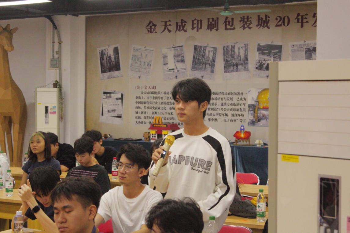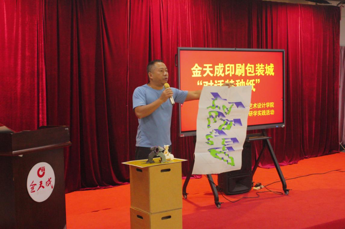 下午时段,冯世杰总经理围绕AI智能在包装设计中的应用进行了深入探讨,并就“AI是否会取代设计师”的问题提出深刻的见解。最后,同学们自由参观了金天成印刷包装城,亲身感受了特种纸在实际应用中的多样性。