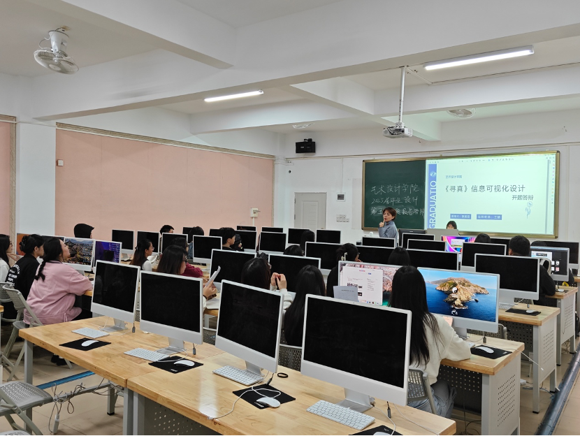 在答辩开始之初,黄竞老师首先介绍了答辩的主题和流程。答辩过程井然有序,每位同学都严格遵循3至5分钟的时限,依次上台展示他们的开题报告,答辩涵盖了研究背景、目的、内容及方法,以及设计作品的预期效果等内容。老师们针对每位同学的陈述和报告内容提出了深入且专业的问题,并给予了宝贵的反馈和建议。这种师生间的互动不仅加深了同学们对研究主题的理解,也为他们的毕业设计指明了方向。