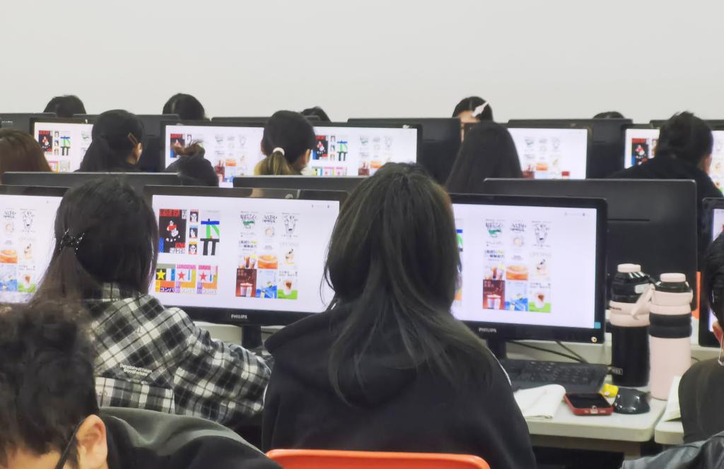 课程开篇,卢老师以品牌“奈雪の茶”极简菜单与市井奶茶店海报的对比为例,剖析版式设计中“负空间留白”与“信息密度”的博弈关系。通过将“审美趣味”明确为版式设计的核心指标,跳出了传统技术训练的窠臼,引导学生思考视觉语言的文化附加值。卢老师系统阐释了广告版式设计的五大核心维度:动线设计(通过瑞幸案例解析Z型/F型视觉流程)、主次关系(以街边招牌为例强调焦点权重)、取舍决策(运用"三秒法则"训练信息优先级)、受众适配(分组模拟Z世代与银发族视觉偏好)、媒介响应(对比同一广告在手机竖屏与户外LED的版式变形),构建了从视觉规律到用户场景的完整设计方法论。卢老师在讲授过程中巧妙地运用“奈雪”“瑞幸”“广告招牌”等案例启发学生思考,然后再耐心地总结设计要点。课程小结时,他用“版面好比做菜”这一形象的比喻,生动地总结了版式设计中主次、动线、取舍、受众和适配的关系。