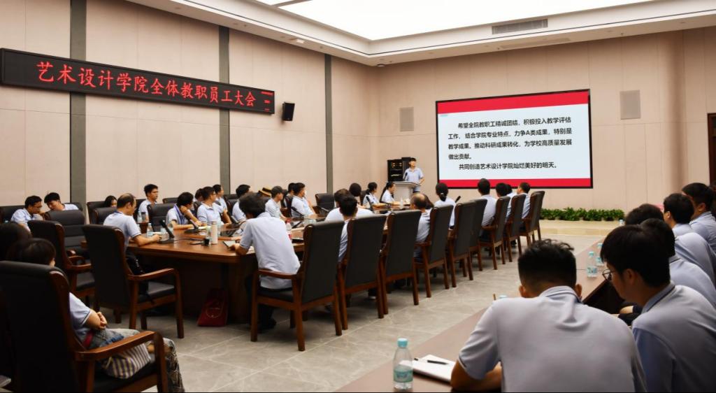 最后,尚华院长介绍本院新入职教师以及对学校的发展历程、我院专业特色及相关成果等内容进行了详细的汇报,尚院长重点传达我校本科教学工作合格评估工作会议精神,对学校的指标和学院的指标分解逐一进行讲解,对每一分解指标进行任务安排。她强调,全体教师要统一思想、扛起责任、扎实工作,希望全院教职工精诚团结,积极投入本科教学评估工作,为学校高质量发展做出贡献,为学校的评建工作增砖加瓦。