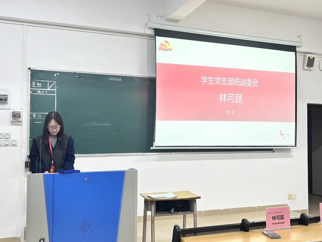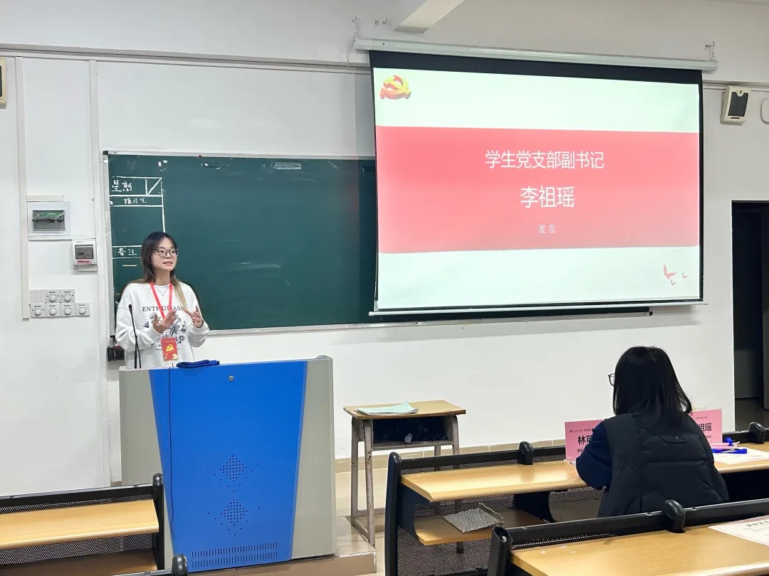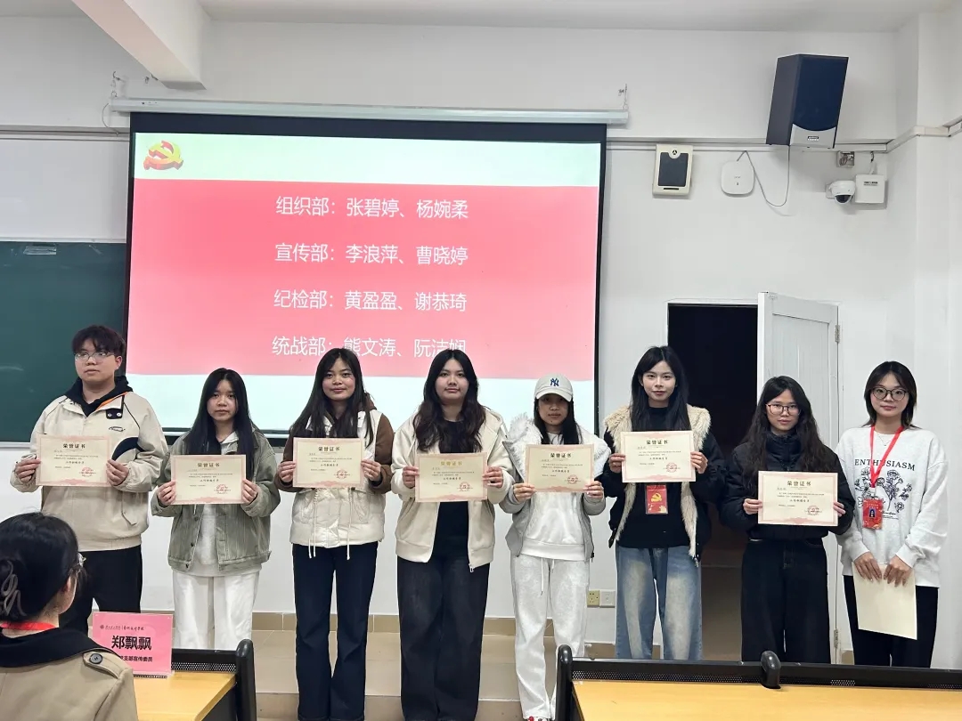 表彰仪式环节,党支部副书记李祖瑶为张碧婷等8位年度工作积极分子颁发荣誉证书。学生党员熊文涛作为代表发言时表示:"这份荣誉既是激励更是责任,我们将以'功成不必在我,功成必定有我'的担当,继续在服务师生中践行初心使命。"