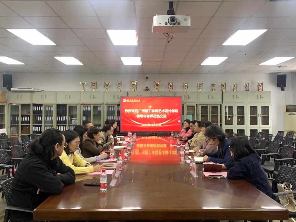 (赵佳辉)在艺术与科技深度融合的时代背景下,为进一步推进友校深度交流,深化友校专业领域合作,实验室建设等专业学习,2025年3月5日上午,威廉希尔中文网站尚华院长带领方滨副院长、视觉传达设计专业系主任段碧丽、环境设计专业系主任安陆禄、实验室主任朱镜、科研秘书赵佳辉等老师,赴广东技术师范大学美术学院开展参访研学交流活动。广东技术师范大学美术学院的刘子川院长,吴振全副院长、陈静敏副院长,视觉传达设计专业系主任窦潇、视觉传达设计专业负责人罗樾,环境设计专业系主任周峻岭,环境设计专业陈怡,实验室主任杨文超等老师热情接待,并专门召开了专题座谈会。
